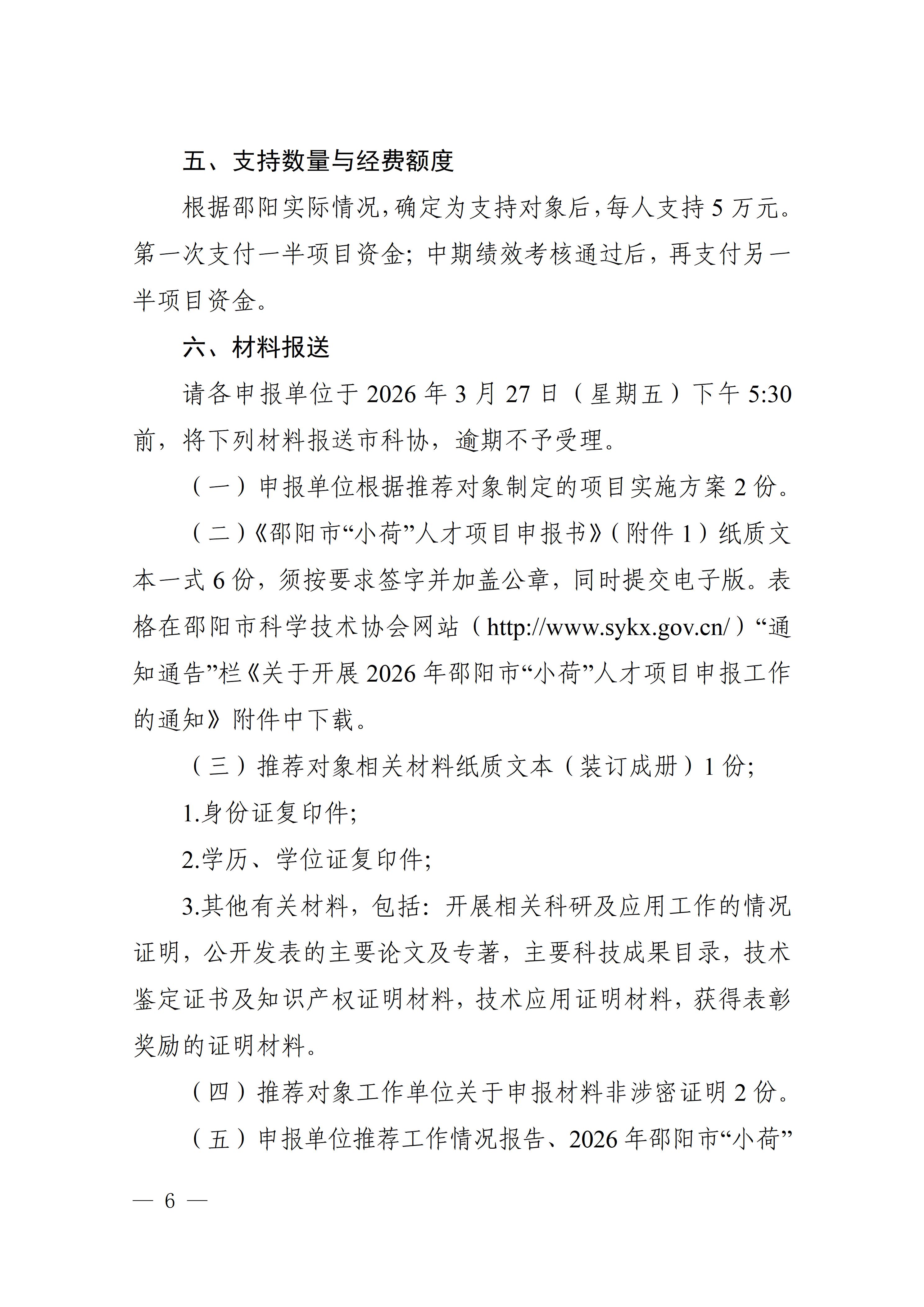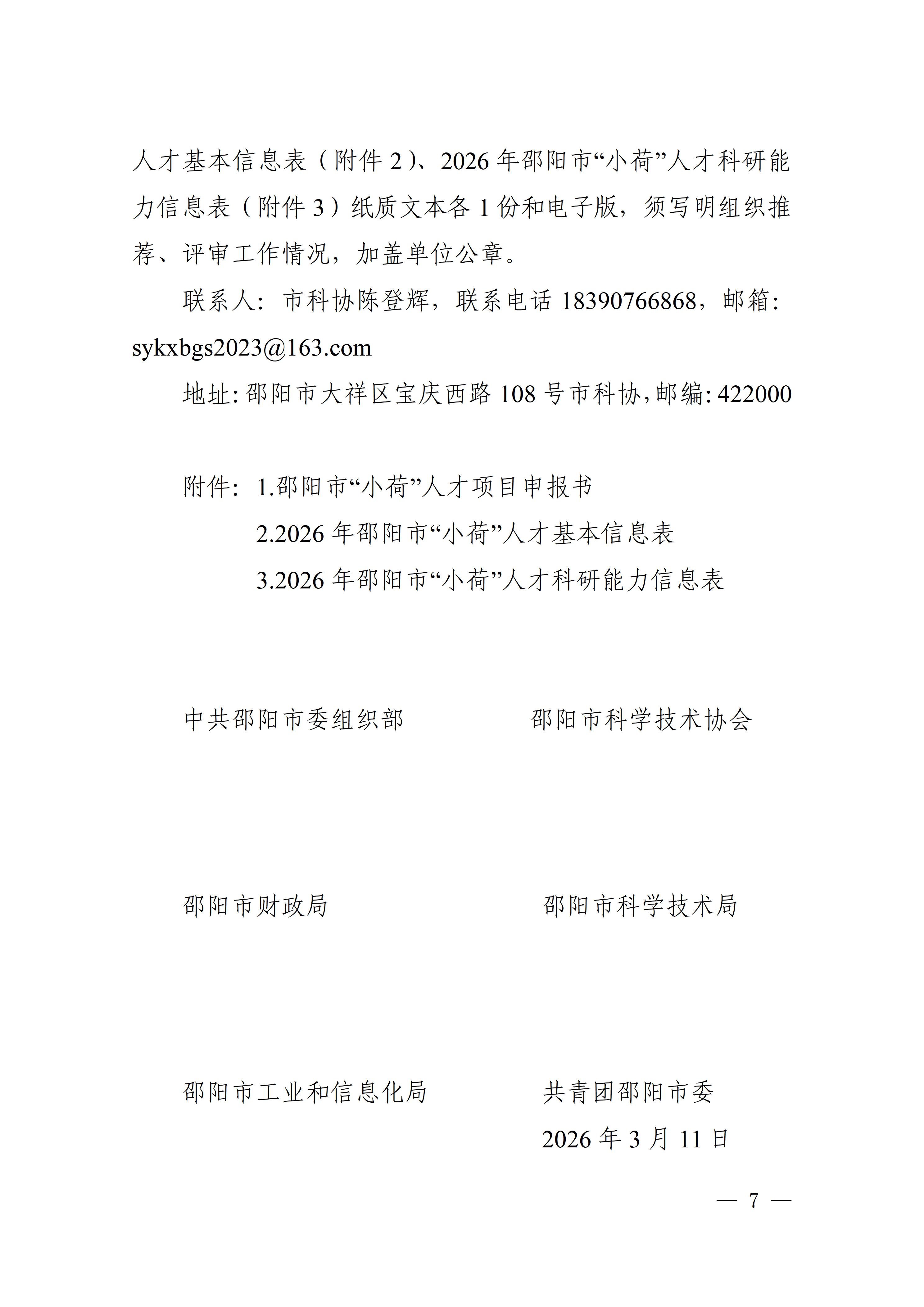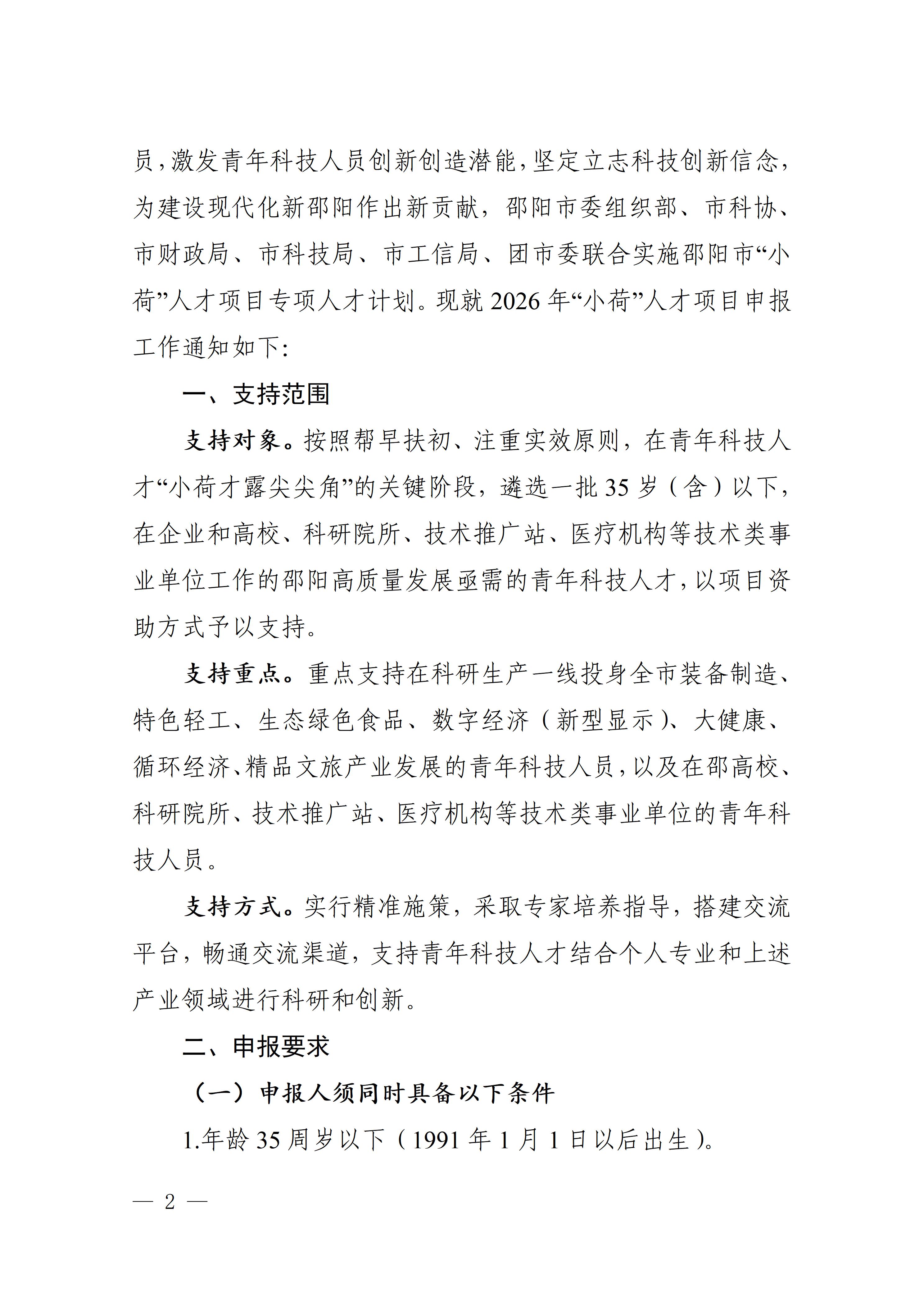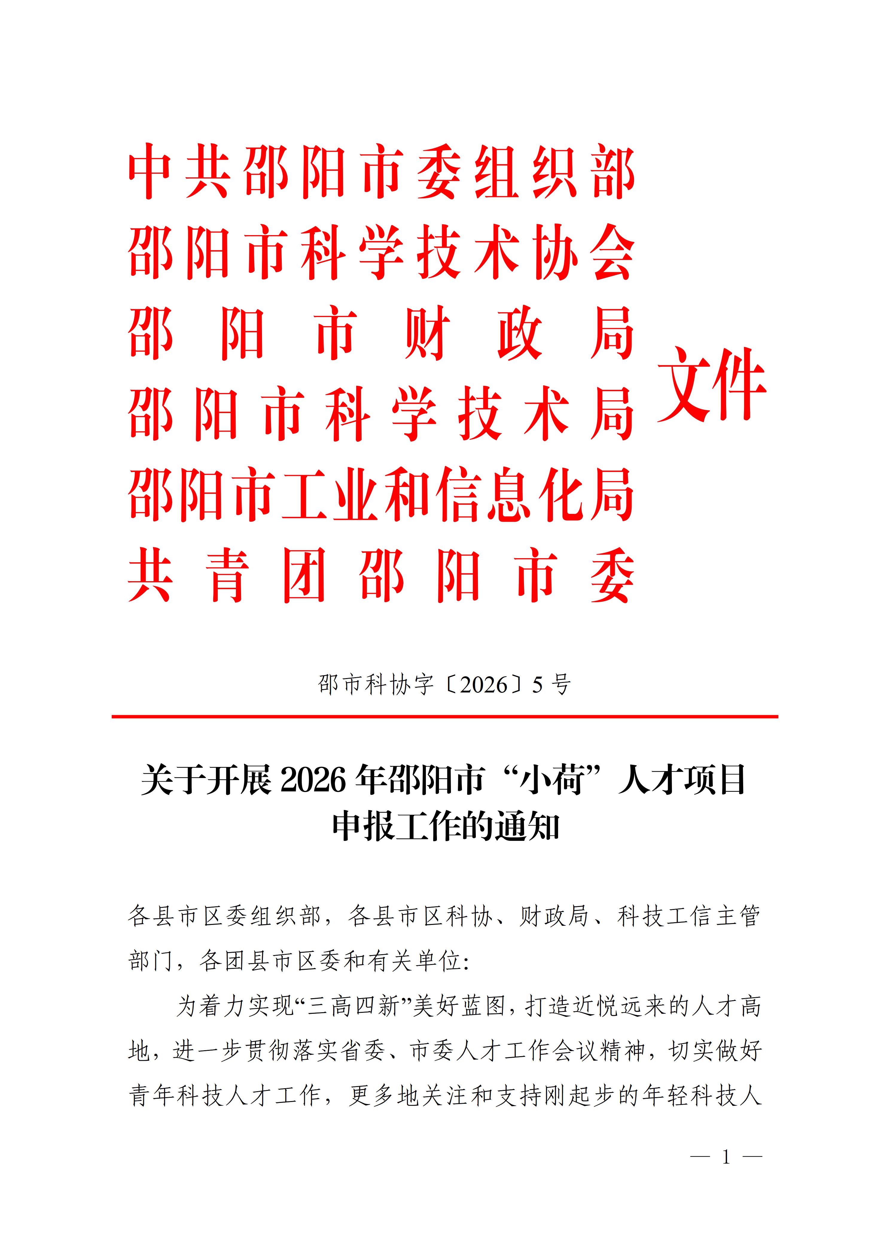 关于开展2026年邵阳市“小荷”人才项目 申报工作的通知