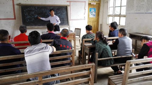 科技专家秦老师在东山乡东山村给村民授课