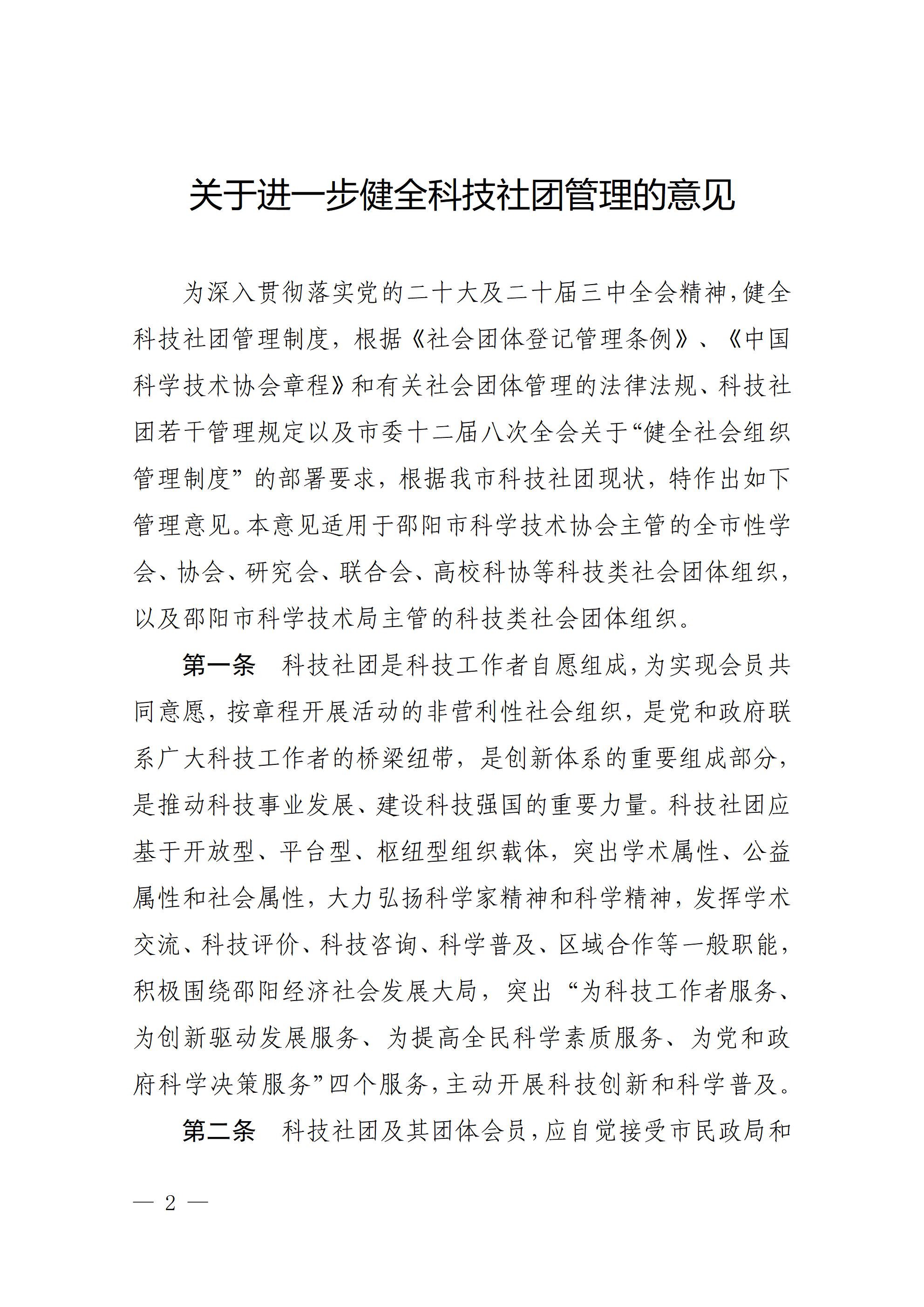 关于印发《关于进一步健全科技社团管理的意见》的通知